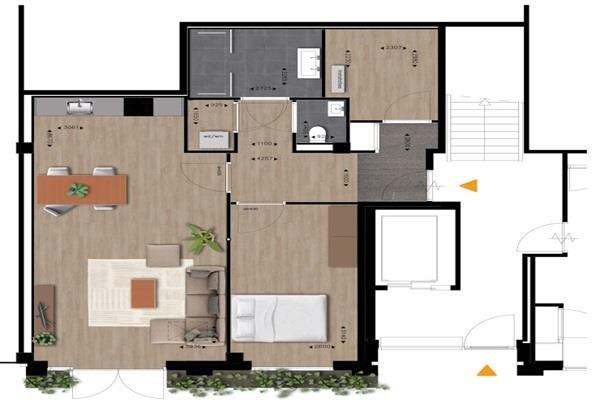 Dit stijlvolle appartement wordt opgeleverd met een mooie PVC vloer. Geniet van afgewerkte muren en plafonds als neutrale basis voor jouw persoonlijke stijl.