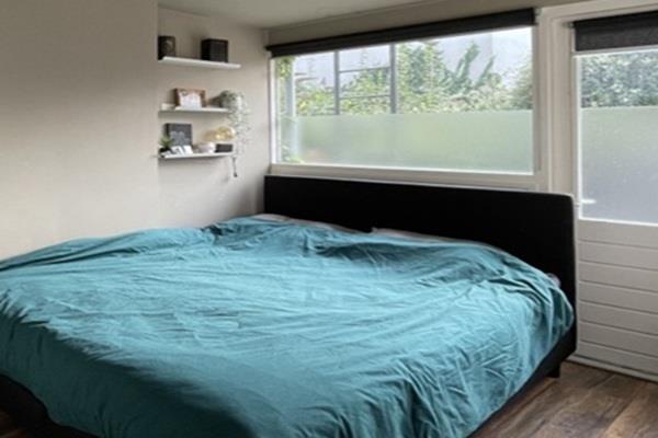 De woonkamer en slaapkamer grenzen aan elkaar en zijn af te scheiden door middel van ensuite deuren.