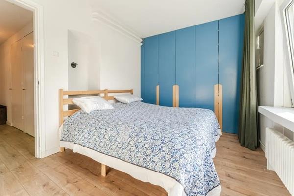 De royale woonkamer is heerlijk licht dankzij de grote raampartijen aan beide zijden. De moderne open keuken beschikt over een gezellige eetbar en is van alle gemakken voorzien. Vanuit de keuken heb je toegang tot het balkon aan de voorzijde, gelegen op het noordwesten. Dit is een beschut balkon met uitzicht op een groene, glooiende strook en de bomen langs de Lelylaan, waar je ’s avonds nog heerlijk van de laatste zonnestralen kunt genieten.
