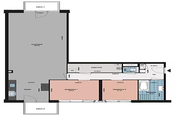 Het appartement beschikt over twee slaapkamers. De grootste slaapkamer is circa 12,6 m², de tweede slaapkamer is ongeveer 9,1 m². Deze kamer is ook uitstekend te gebruiken als werk- of studeerkamer.