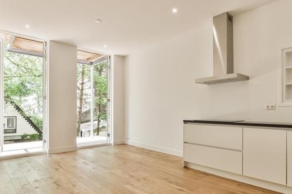 De gezamenlijke entree leidt naar het appartement op de eerste verdieping. Via de lange gang komt u in de woonkamer aan de achterzijde van de woning, voorzien van hoge plafonds en veel natuurlijk lichtinval. De woonkamer beschikt over een ruime open keuken met moderne apparatuur, waaronder een oven/magnetron, vaatwasser, koel-vriescombinatie en inductiekookplaat. Openslaande deuren geven toegang tot het ruime balkon.