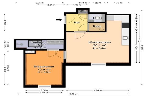 Dit heerlijke eenslaapkamer appartement is gelegen op de top etage. De entree is bereikbaar via de centrale voordeur van het indrukwekkende gebouw. Trap naar de tweede etage. Voordeur met hal. Toegang tot het separate toilet (zelfde stijl als de badkamer), meterkast en bergkast. Toegang tot de fenomenaal gerenoveerde woon-eetkamer met visgraat vloer en open keuken. De woning is door de plafondhoogte en raampartijen licht en luxe. De keuken is van alle gemakken voorzien, denk aan een vaatwasser, een inductie kookplaat, een koelvriescombinatie, een Quooker voor direct kokend water en voldoende kastruimte. Vanuit de woon- eetkamer toegang tot de prettige en ruime (10.9m2) slaapkamer welke is voorzien van een tweepersoonsbed en een handige kledingkast. Vanuit de slaapkamer toegang tot de schitterende badkamer met inloopdouche, dubbele wastafel met meubel, spiegel met verlichting en verwarming en twee handdoek radiatoren.