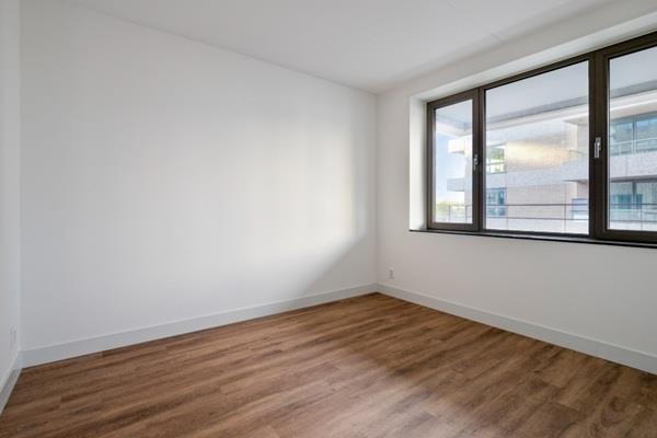Het appartement wordt opgeleverd met PVC vloer en witte wandafwerking.