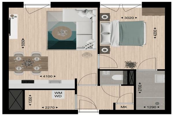 Dit appartement staat voor comfort, luxe en hoogwaardige afwerking. Je beschikt over een ruime, aparte slaapkamer, een stijlvolle woonkamer en een moderne open keuken van Novitelli, volledig uitgerust met Whirlpool inbouwapparatuur. De badkamer is voorzien van hoogwaardig Villeroy & Boch sanitair en een separaat toilet voor extra gemak.