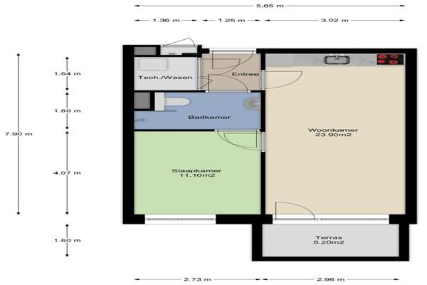 -Inpandige berging met aansluiting wasapparatuur;;