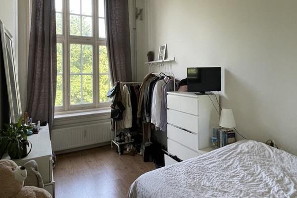 Dankzij de grote, hoge ramen is het appartement heerlijk licht. Vanuit de woning heb je een prachtig uitzicht op het stadspark.