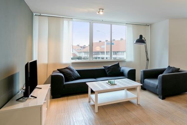 Ruime woonkamer met grote raampartijen. Het appartement heeft een balkon aan de voorzijde. Aansluitend aan de woonkamer is een open keuken te vinden. Deze is uitgerust met een 4- pitsgaskookplaat, afzuigkap, koelkast, vriezer, vaatwasser, combi-magnetron/oven en voldoende opbergruimte.