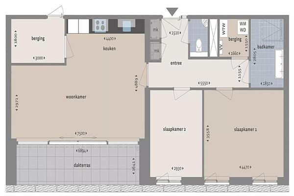Het appartement beschikt over twee goed bemeten slaapkamers, die flexibel te gebruiken zijn als slaap-, werk- of hobbykamer. De badkamer is verzorgd en compleet uitgevoerd, en er is een aparte toiletruimte. Daarnaast is er een praktische berging met aansluitingen voor wasmachine en droger, én een extra externe berging voor fietsen en opslag.