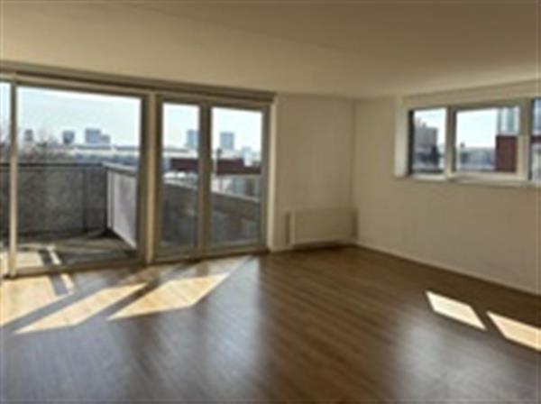 De ruime woning is gelegen op de vijfde woonlaag. Entree woning, hal, badkamer met bad, douche en wastafel, apart toilet met fonteintje, 3 ruime slaapkamers, inpandige berging met wasmachine/droger opstelling, woonkamer (ca. 38 m2) met open keuken en schuifpui naar het balkon (ca. 9 m2).