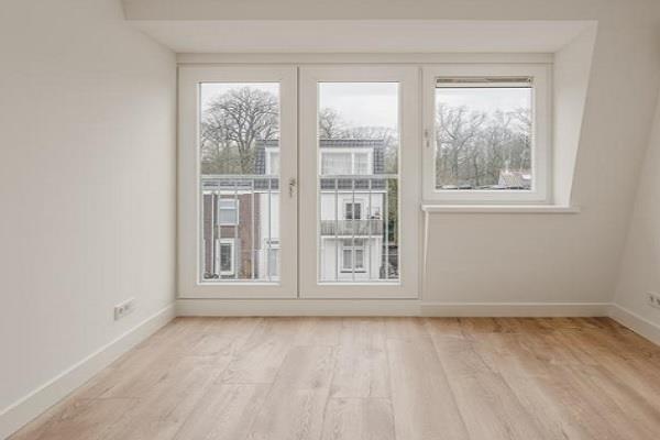 Derde verdieping: , gang, deur naar technische ruimte (groepenkast en zonneboiler), toilet, badkamer met inloopdouche, wastafel en ruimte voor wasmachine/drogeraansluiting, deur naar heerlijke lichte woonkamer aan de voorzijde en open keuken met combi oven, vaatwasser en elektrische kookplaat, lichte slaapkamer aan achterzijde. Het appartement is voorzien van gordijnen en verlichting.