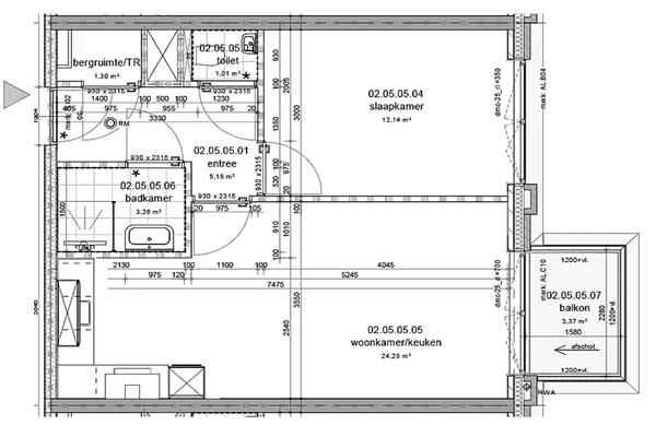 De woonkamer heeft grote ramen tot aan de vloer, waardoor het daglicht volop binnenkomt en je mooi uitkijkt over de omgeving. De ruimte is gemakkelijk in te delen zoals jij dat wilt. Vanuit de woonkamer stap je zo het balkon op, ideaal om even buiten te zitten.