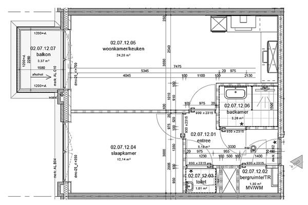 De woonkamer is ruim en licht, met grote raampartijen tot aan de vloer. De vlinderzuilen geven de ruimte een speelse indeling zonder dat het onrustig wordt. Via een grote glazen schuifpui stap je zo het balkon op.