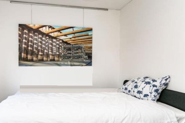 Via de entree betreed je de ruime woon- en eetkamer, ingericht met een mix van moderne en vintage elementen. De keuken is volledig uitgerust met een koelkast, oven, kookplaat en afzuigkap. Het slaapgedeelte, rustig gelegen aan de achterzijde van het appartement, beschikt over een tweepersoonsbed. De badkamer is voorzien van een inloopdouche, wastafel met spiegel en toilet. Tevens is er een wasmachine aanwezig.
