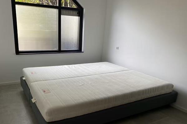 Tweepersoonsbed met nieuw matras, bureau met stoel, fauteuil en dubbele kledingkast. Volledig uitgeruste kitchenette en een zeer luxe, moderne badkamer...