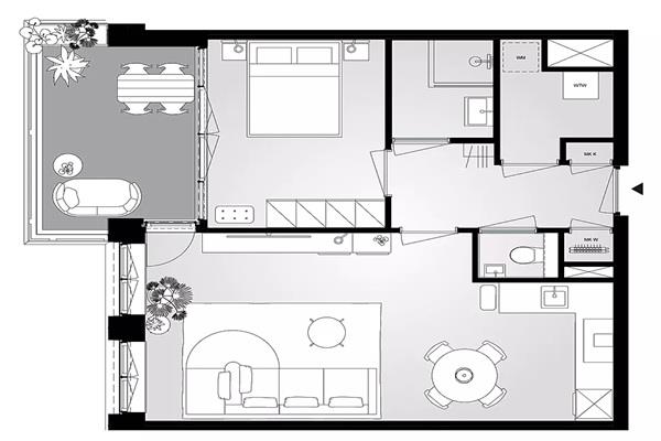 Dit appartement beschikt over een efficiënte en goed doordachte indeling waarbij wonen, slapen en buitenruimte op een logische manier zijn gecombineerd. De woonkamer vormt samen met de open keuken een prettige en overzichtelijke leefruimte met voldoende plaats voor een zithoek en eethoek. Vanuit de woonkamer is er directe toegang tot het balkon, dat ruimte biedt voor een zitje en bijdraagt aan een prettige verbinding tussen binnen en buiten. De slaapkamer is ruim genoeg voor een tweepersoonsbed en kastruimte en grenst gunstig aan de badkamer, die praktisch en modern is ingericht. Daarnaast is er een separate toiletruimte en een hal met ruimte voor de wasmachine en technische installaties, wat zorgt voor een nette en functionele indeling. Door de grote raampartijen komt er veel daglicht binnen en voelt de woning licht en ruimtelijk aan. Deze woning is geschikt voor een stel of een werkende professional die op zoek is naar een comfortabel en goed ingedeeld appartement met buitenruimte.