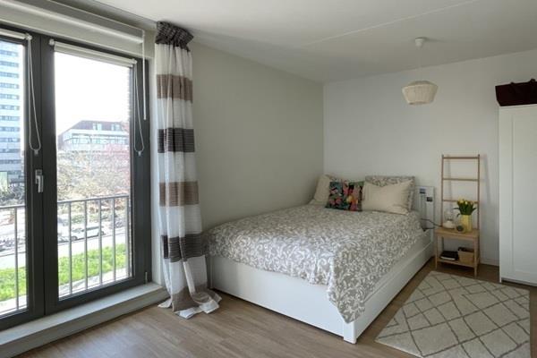 De ruime slaapkamer heeft grote raampartijen en een en-suite badkamer met douche, wastafel en aansluiting voor de wasmachine. Daarnaast is er een separaat toilet en een inpandige berging aanwezig. In het complex is bovendien een gemeenschappelijke fietsenstalling waar je jouw fiets veilig kunt stallen.