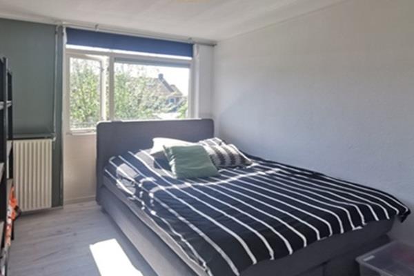 Ook de slaapkamer bevindt zich aan de rustige achterzijde van het appartement en beschikt over een handige inbouwkast, wat zorgt voor extra opbergruimte.