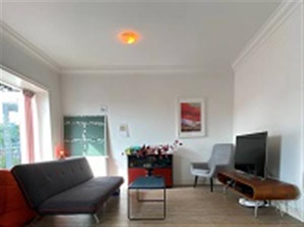 De woonkamer is 30m² en heeft inbouwspots boven de moderne keuken. De keuken is voorzien van diverse apparatuur waaronder een vaatwasser, kookplaat en koelkast.De woonkamer geeft ook toegang tot een privé balkon van 4m²