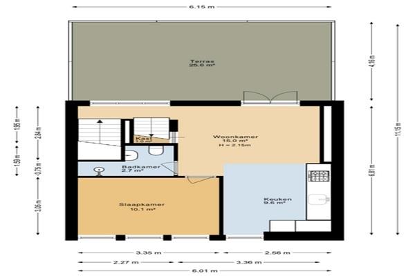 De woonkamer geeft toegang tot een riant dakterras, waar je heerlijk kunt genieten van de zon en het uitzicht over de buurt. Op deze verdieping bevindt zich ook een slaapkamer van circa 10 m² en een nette badkamer met douche, toilet en wastafel.