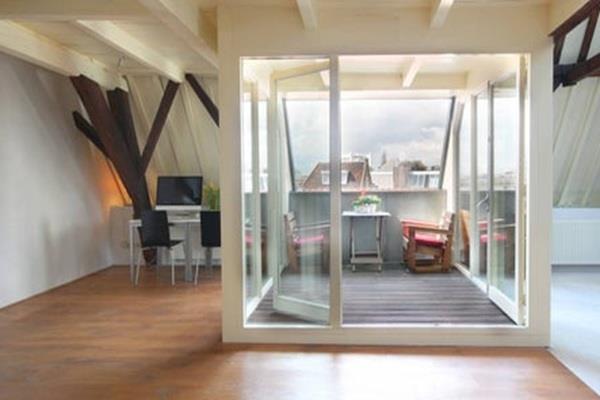 Vanuit vrijwel alle hoeken in de woning is de prachtige en historische dakconstructie te zien, wat een uitmuntende sfeer geeft aan het appartement.