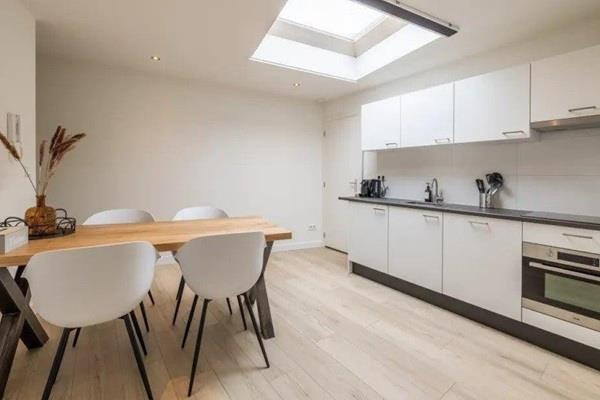 Lichte woonruimte met moderne keuken. Voorzien van kookplaat, oven/magnetron, koelkast en alle benodigde keukengerei.