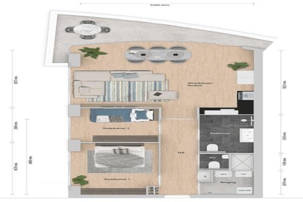 De woning is voorzien van een moderne, open, witte hoogglans keuken (voorzien van inductiekookplaat, koel-/vriescombinatie, oven, magnetron en vaatwasser). Deze high-end woning beschikt over een luxe badkamer voorzien van o.a. een Grohe rainshower, dubbele wastafel en tweede toilet. Er is een fraaie vloerafwerking in de kleur Pure Oak en 2 slaapkamers. Alle wanden zijn fraai afgewerkt met glasvliesbehang. Alle appartementen zijn gebouwd met duurzame materialen.