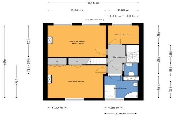 Op deze verdieping bevinden zich 3 slaapkamers. Aan de voorkant bevinden zich een grote en een kleinere slaapkamer, ideaal in te richten als kinderkamer of thuiskantoor. Aan de achterkant ligt de tweede ruime slaapkamer, voorzien van inbouwkasten. Ruime badkamer met ligbad, aparte douche, wastafel met meubel en design radiator.