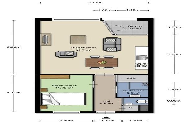 De woonkamer met open keuken is ruim te noemen en is makkelijk in te delen. Vanuit de woonkamer heb je toegang tot een klein balkon.