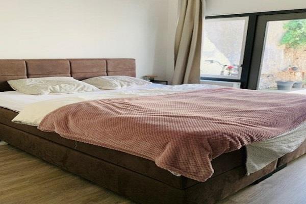 De slaapkamer ligt aan de achterzijde van de woning, waardoor deze zeer rustig is. De leuke stadstuin is bereikbaar via de slaapkamer, middels openslaande deuren.