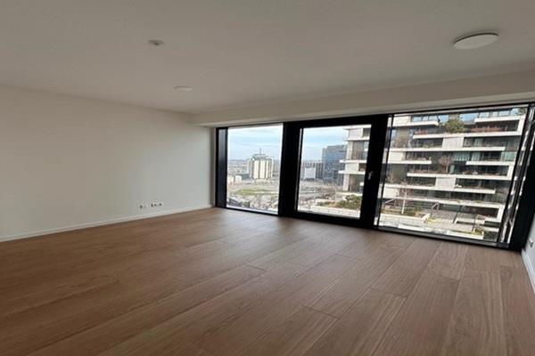 De woonkamer is licht en ruim opgezet. Grote ramen zorgen voor veel daglicht en een open sfeer. Vanuit hier heb je toegang tot de loggia.