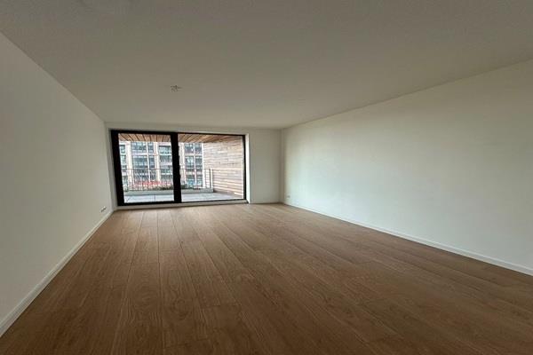 De woonkamer is licht en ruim opgezet. Grote ramen zorgen voor veel daglicht en een open sfeer. Vanuit hier heb je toegang tot de loggia.