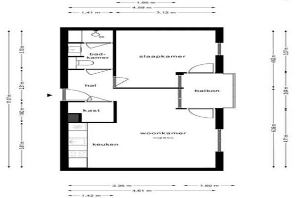 Dit lichte appartement van ca. 45 m² biedt een ruime woonkamer met toegang tot het balkon, een open keuken voorzien van moderne inbouwapparatuur, een slaapkamer en een luxe badkamer. De open keuken is uitgerust met inductiekookplaat, oven, afzuigkap, koel/vriescombinatie en vaatwasser. De badkamer is voorzien van een douche, wastafel en een toilet.