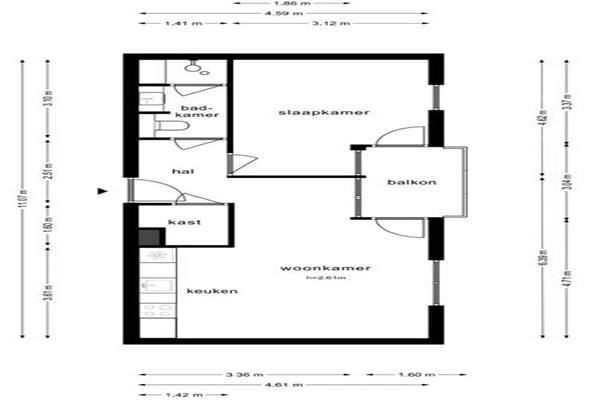 Dit lichte appartement van ca. 45 m² biedt een ruime woonkamer met toegang tot het balkon, een open keuken voorzien van moderne inbouwapparatuur, een slaapkamer en een luxe badkamer. De open keuken is uitgerust met inductiekookplaat, oven, afzuigkap, koel/vriescombinatie en vaatwasser. De badkamer is voorzien van een douche, wastafel en een toilet.