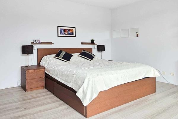 Verderop in de hal vindt u de royale badkamer met zowel een ligbad als een aparte douche, aangevuld met een praktische wastafel. Het toilet is handig gescheiden van de badkamer, wat de functionaliteit ten goede komt. Een berging met de wasmachine bevindt zich vlakbij. Aan het einde van de hal vindt u de hoofdslaapkamer en de tweede slaapkamer, beide smaakvol ingericht en voorzien van alle benodigdheden voor uw comfort.