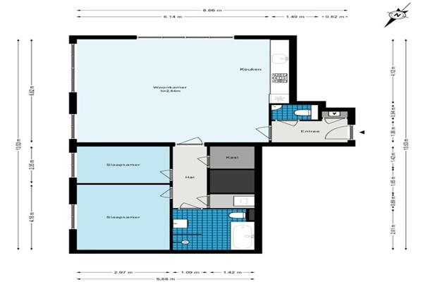 Via een centrale entree met brievenbussen en intercom, kun je naar de bergingen en met de lift naar de 15e etage. Je komt binnen in de hal met de meterkast en het toilet met fonteintje. De ruime woonkamer heeft veel ramen en een open keuken. Keuken is inbouwapparatuur met een elektrische kookplaat, koel-vries combi, vaatwasser, combi-magnetron en een afzuigkap. Er zijn twee slaapkamers welke via de tweede hal te bereiken zijn. Via deze hal kom je ook bij de interne berging van 2m2. De badkamer heeft een wastafel, aparte douche, ligbad en het tweede toilet.