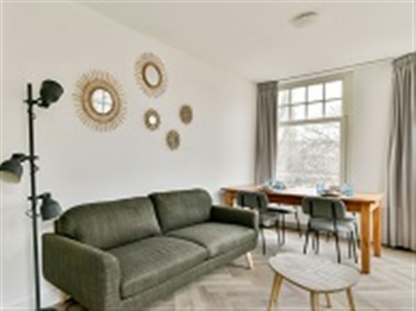Toegang via de gemeenschappelijke trap op de tweede verdieping. Het appartement ligt op de hoek en heeft daardoor veel natuurlijk licht. Er zijn twee slaapkamers en het appartement is geschikt om te delen. Beide slaapkamers hebben een tweepersoonsbed en een kledingkast. Aan de voorzijde is een Frans balkon. De keuken is uitgerust met een vaatwasser, een koelkast, een inductiekookplaat en een combi-oven/magnetron. De badkamer heeft een ligbad, een douche, een toilet en een dubbele wastafel met onderkast.