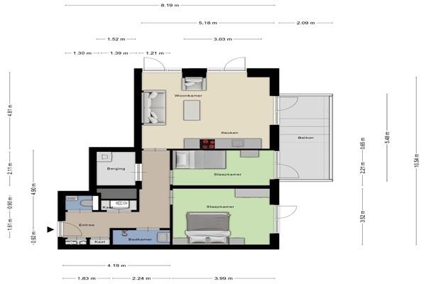De lichte woonkamer met open keuken vormt het hart van de woning. Dankzij de hoekligging en grote raampartijen geniet u hier van veel lichtinval én een panoramisch uitzicht over de skyline van Rotterdam. Vanuit de woonkamer is het balkon bereikbaar.