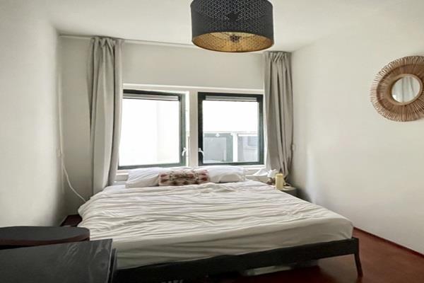 Aan de andere kant van de woonkamer vind je de tweede, grootste slaapkamer. Deze kamer beschikt over een inbouwkast.