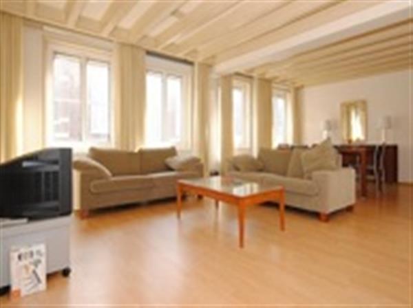 Entree op straat niveau, trap naar de 1e etage, grote lichte woonkamer ca. 7.75x5.40 met prachtige houten vloer. Keuken ca. 2.66x2.05 voorzien van gasfornuis, afzuigkap, koelkast, vaatwasser, oven en magnetron. Toilet. Klein balkon met fantastisch uitzicht op zeer fraaie binnenplaats. Authentieke trap naar de 2e etage, slaapkamer 1 ca. 4.15x2.65 met ruime inbouwkast. Slaapkamer 2 ca. 5.20x3.34 met ruime inbouwkast. Royale badkamer ca. 4.00x2.65 voorzien van douche, bad, wastafel en toilet. De gehele woning verkeerd in uitstekende staat van onderhoud en is voorzien van kunststof kozijnen en dubbel glas.