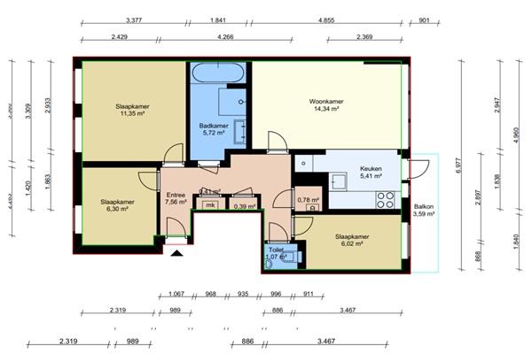 Aan de achterzijde zit nog een slaapkamer met toegang tot het balkon.