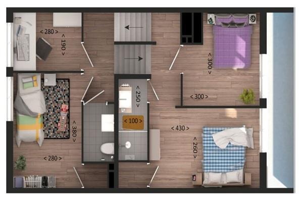 •Slaapverdieping: Hier vind je vier slaapkamers en een badkamer met douche, wastafel en toilet.