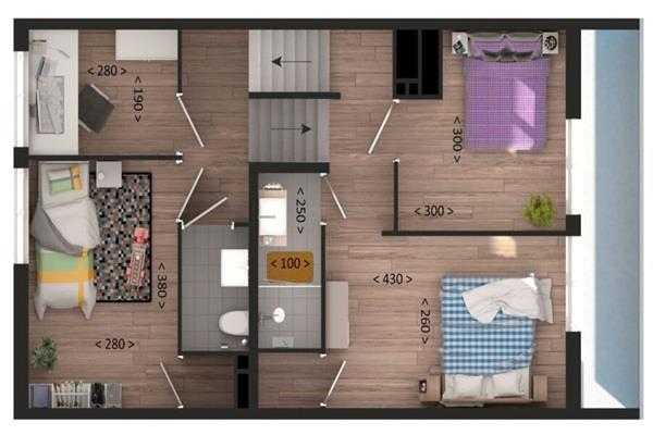 •Slaapverdieping: Hier vind je vier slaapkamers en een badkamer met douche, wastafel en toilet.