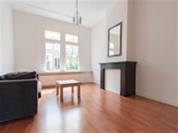 Open portiek naar eerste etage; entree appartement: U-vormige hal (van ca. 7.00 x 1.20) met kastruimte; woonkamer (van ca. 6.11 x 3.99) voorzien van laminaatvloer, zwart marmeren originele schouw en glas in lood ramen; slaapkamer aan achterzijde (van ca. 5.09 x 3.28) met eveneens een laminaatvloer en twee garderobe kasten; moderne keuken voorzien van oven, 4-pits gaskookplaat, afzuigkap, koel-vriescombinatie en vaatwasser; vanaf de keuken toegang tot het achterbalkon (zon vanaf ca. 17.00u) en met vaste parasol; nette badkamer (van ca. 2.26 x 3.95) met hoekligbad, wastafelmeubel, designradiator en aansluiting voor de wasmachine; apart toilet met fontein; slaapkamer aan voorzijde (van ca. 2.75 x 2.87).