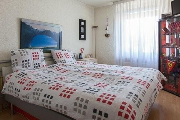 Slaapkamer 2 (2,86 x 2,10 m) voorzien van laminaatvloer en toegang tot balkon 2.