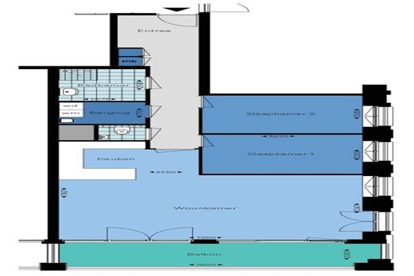 In de hal vindt u de meterkast, berging, separaat toilet en badkamer (voorzien van inloopdouche en wastafel). Vanuit de hal betreedt u de ruime woonkamer met open keuken en deur naar het balkon (westen). De keuken is voorzien van luxe Siemens inbouwapparatuur zoals een keramische kookplaat, afzuigkap, vaatwasser, combi oven en koel/vriescombinatie. Het appartement beschikt over 2 slaapkamers.