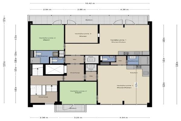 -Woonkamer met moderne open keuken van ca. 22 m². Vanuit de woonkamer heb je toegang tot het balkon van ca 17 m².