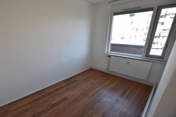 -Ruime en lichte woonkamer met een nette laminaatvloer en een open keuken, voorzien van eenvoudige opstelling (totaal ca. 25 m²) en toegang tot het balkon.