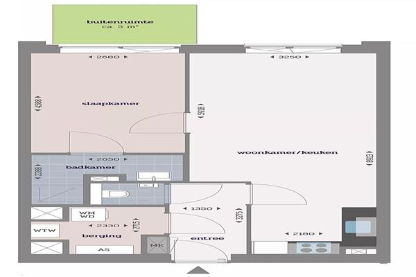 De woning beschikt over een lichte woonruimte met een volledig ingerichte, moderne keuken voorzien van vijf inbouwapparaten. De badkamer is volledig betegeld en uitgerust met een douche, wastafel met spiegel en comfortabele vloerverwarming.
