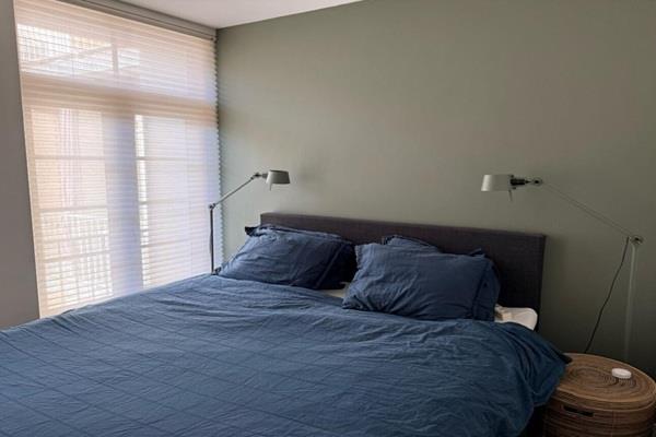 Aan de achterzijde van de woning ligt de keuken. Deze volledig gerenoveerde keuken is voorzien van inbouwapparatuur, grote koelkast en veel opbergruimte. De keuken grenst direct aan de slaapkamer. Vanuit deze slaapkamer is er toegang tot het balkon, gelegen op het zuidwesten, waar je heerlijk kunt genieten van de middag- en avondzon.