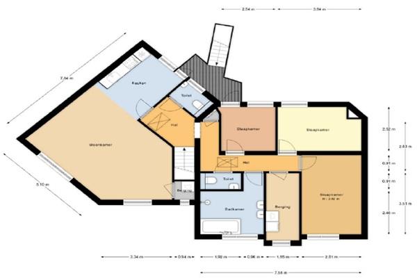 Begane grond, entree, meterkast, trapopgang naar eerste verdieping.